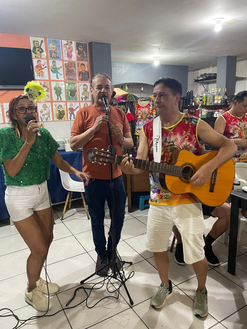 O convidado do bloco nesse domingo foi o artista paraense Márcio Montoril que mostrou como se faz um carimbó, quem também deu o ar de seu talento foi o cantor obidense Eduardo Dias, assim como a cantora Lívia Amorim, Nean Galúcio e Cláudio Blue, que deixaram a festa mais elétrica ainda.