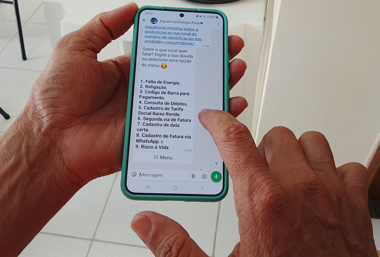 A plataforma foi desenhada para ser simples. Ao adicionar o número da Equatorial Pará no WhatsApp, o usuário tem acesso a uma vitrine de serviços, como: